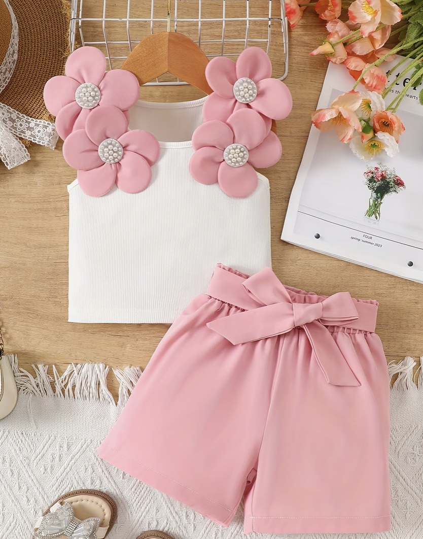 GIRLS FLORAL WHITE AND PINK CLOTHING SET